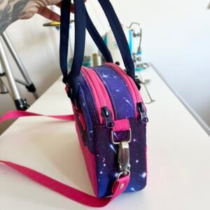 Essa bolsa foi feita como protótipo para uma aula de costura. Ela está perfeita, mas a alça transversal não possui regulagem de comprimento.