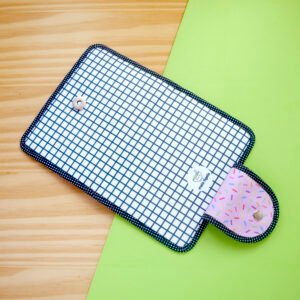 Nessa carteira fofa você pode carregar um pacotinho de lenços úmidos (usei como referência o tamanho dos pacotes das marcas Íntimus e Always), absorventes dos mais variados formatos e tamanhos, remédios pra cólica e anti-concepcional.