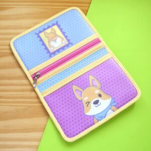 Possui dois bolsos, sendo 1 deles simples e outro com fechamento de zíper, ambos feitos em plástico translúcido. Fechamento aba e com botão de ímã.