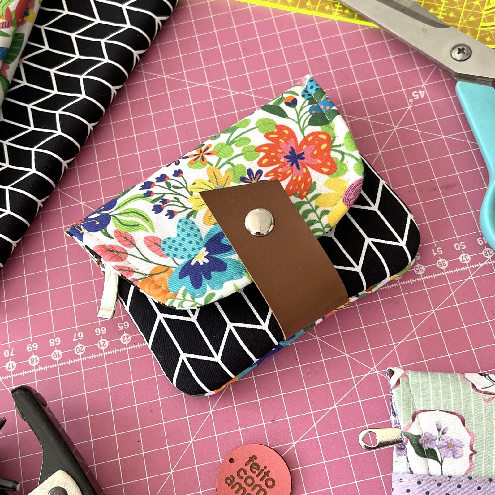 Essa carteira pode ser usada pra carregar documentos como CNH, RG, Cartões de crédito OU ser usada pra carregar itens pequenos, como absorventes, remédios, carregador do celular, fones de ouvido etc.