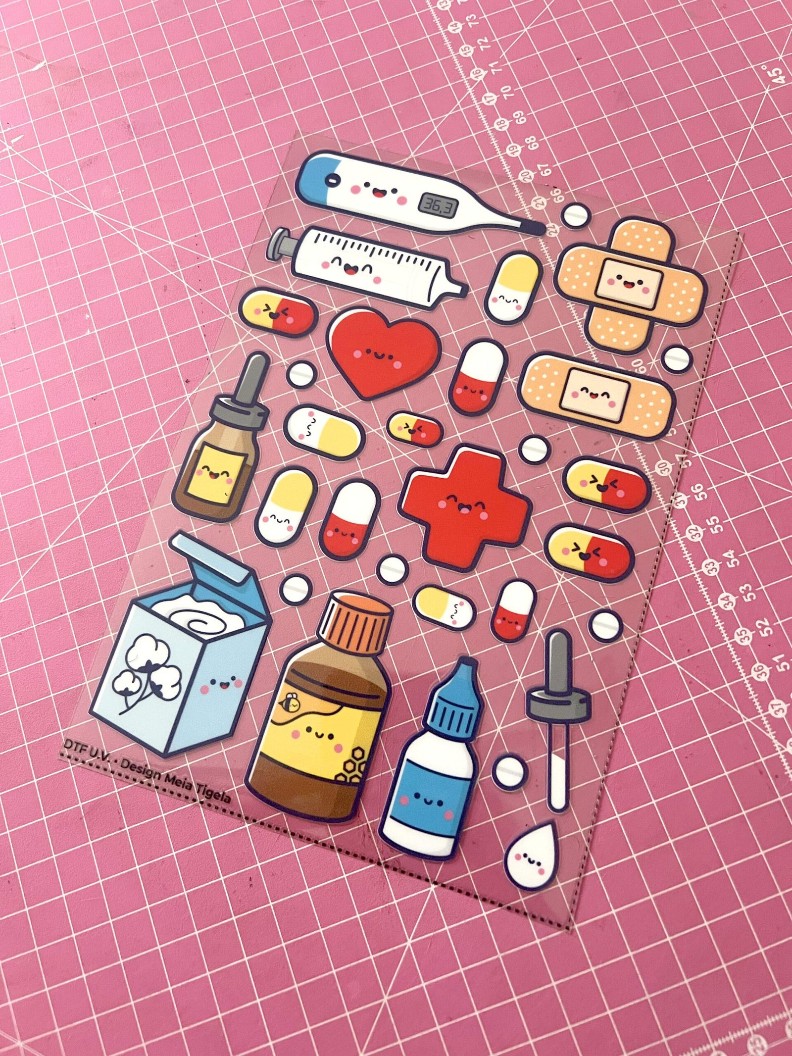 Cartela de Adesivos DTF – Farmacinha