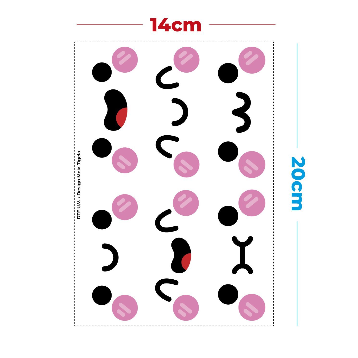 A cartela tem tamanho TOTAL aproximado de 14 x 20cm (os desenhos estampados nela possuem tamanho proporcional ao demostrado nas imagens ilustrativas).