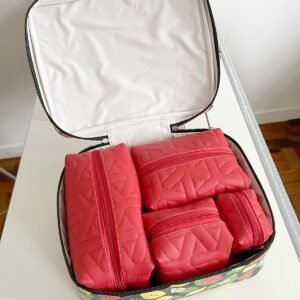 Esse kit é composto por 1 maleta organizadora e 4 necessaires modelo box.
