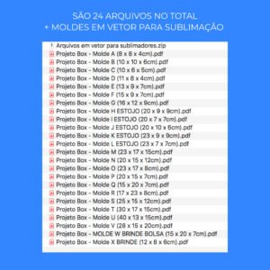 Ou seja, você estará comprando um kit com moldes em 24 tamanhos diferentes de peças, mas cada tamanho terá duas opções de molde. No total são 48 moldes!