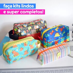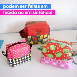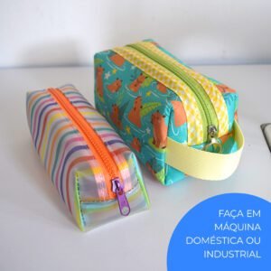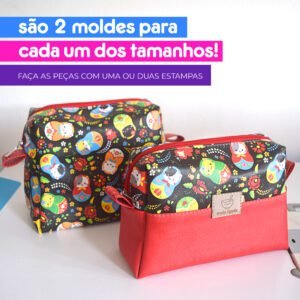 Cada uma das necessaires pode ser feita em duas opções de design: usando apenas uma estampa, ou então com duas estampas.