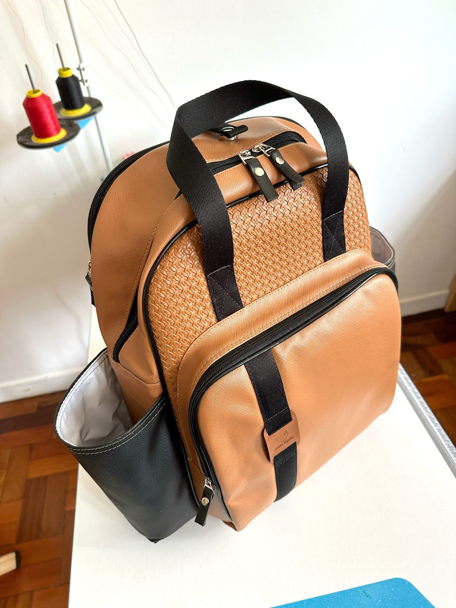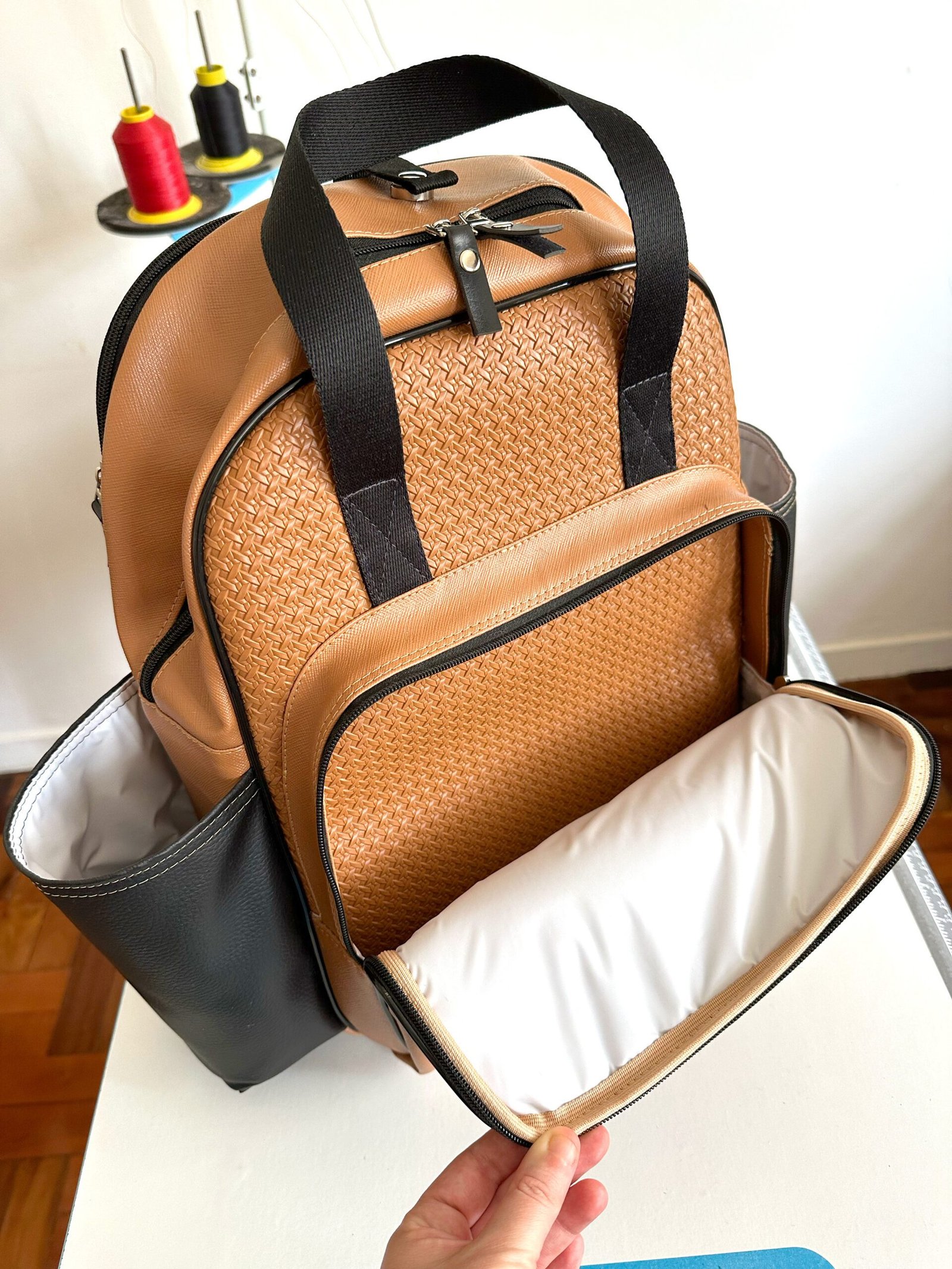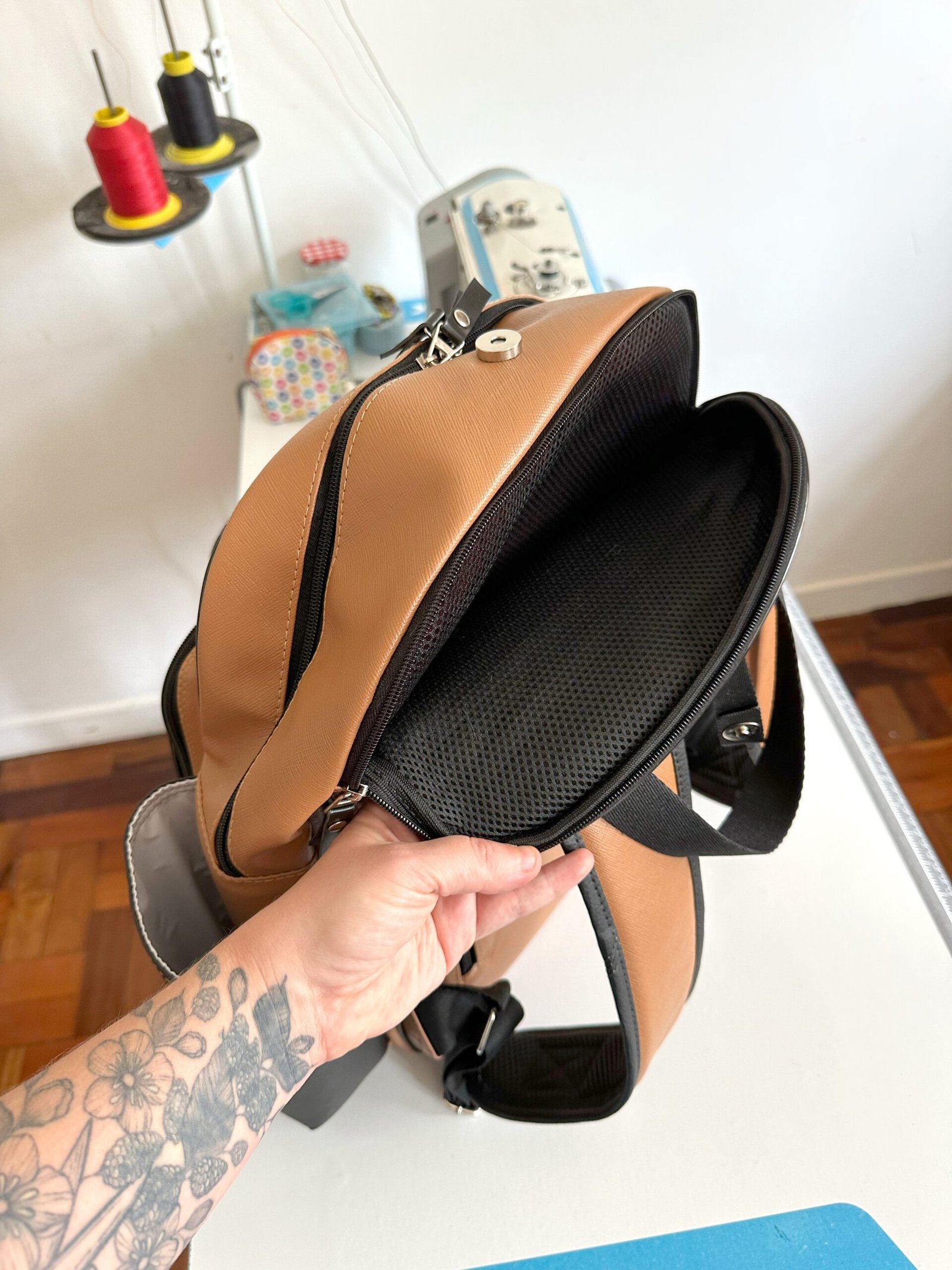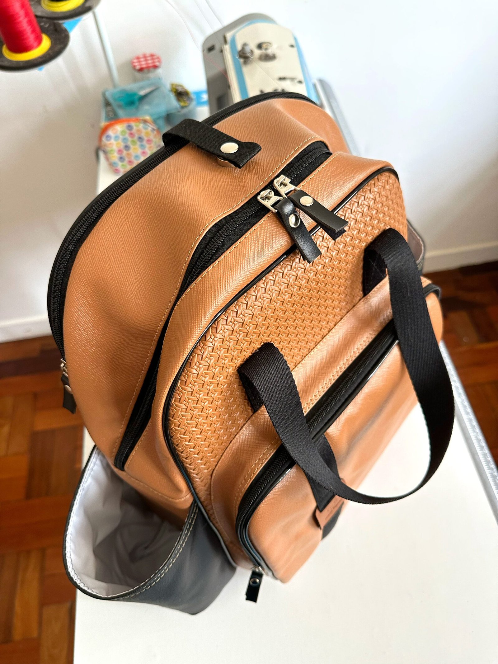 Essa mochila é um protótipo e foi feita pra testar os moldes para uma aula de costura.